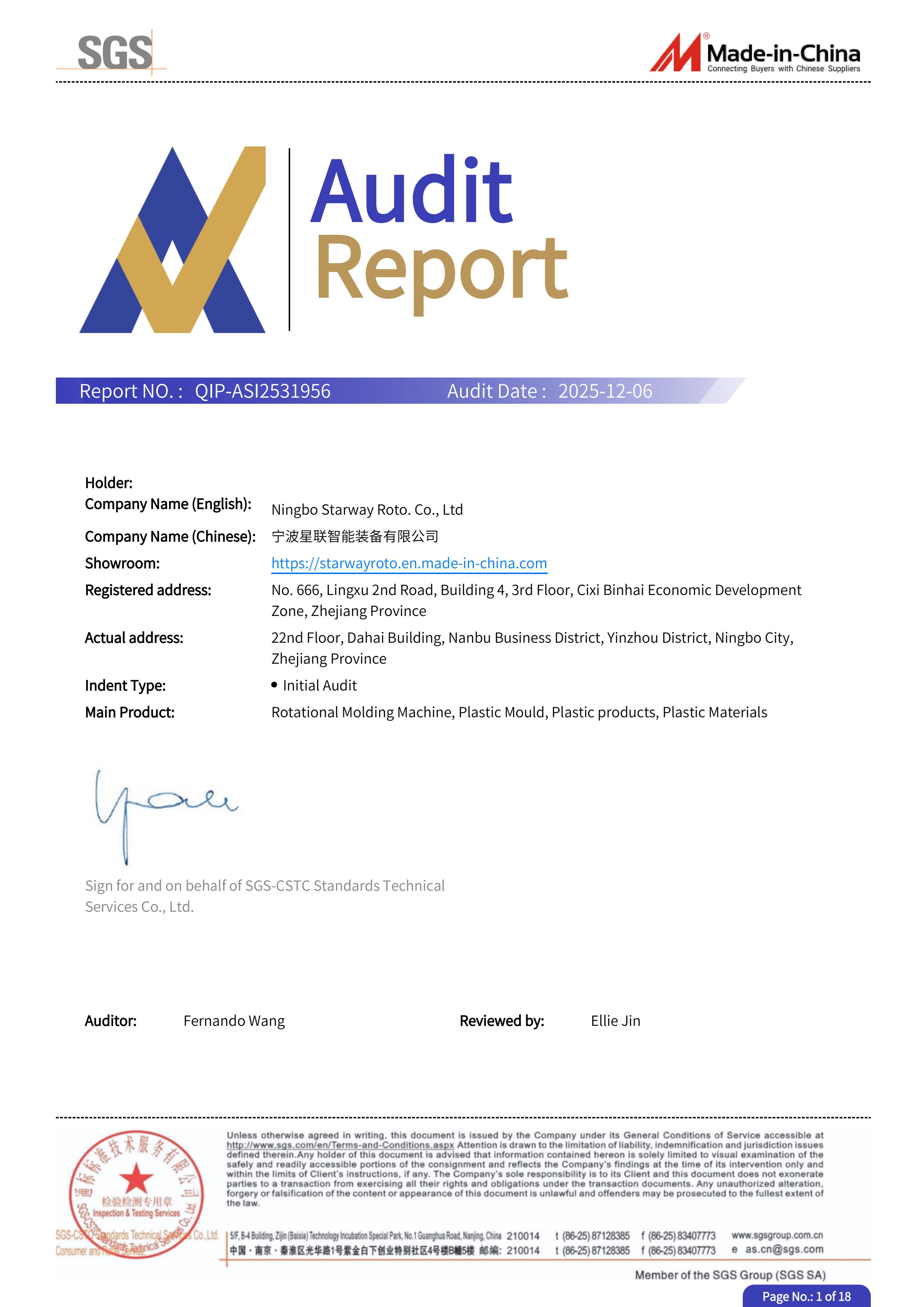 星途滚塑成立于 2009年,是一家专注于高端滚塑设备研发制造、滚塑模具开发、滚塑解决方案的科技创新型企业。公司拥有一支经验丰富的研发与管理团队,配备了先进的生产设备与检测设备,凭借强大的技术创新能力、严格的质量管控体系和完善的售后服务网络,赢得了国内外客户的广泛认可与信赖。此次通过 SGS 认证,将进一步提升公司的品牌影响力与市场竞争力,为公司的长远发展奠定坚实基础。